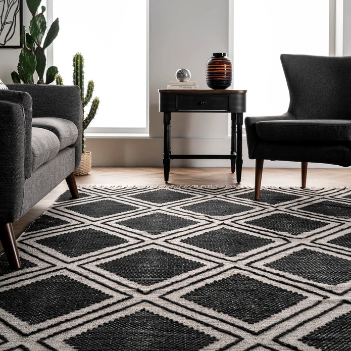 سجاد أبيض وأسود يدوي – الأناقة الكلاسيكية بتصميم عصري