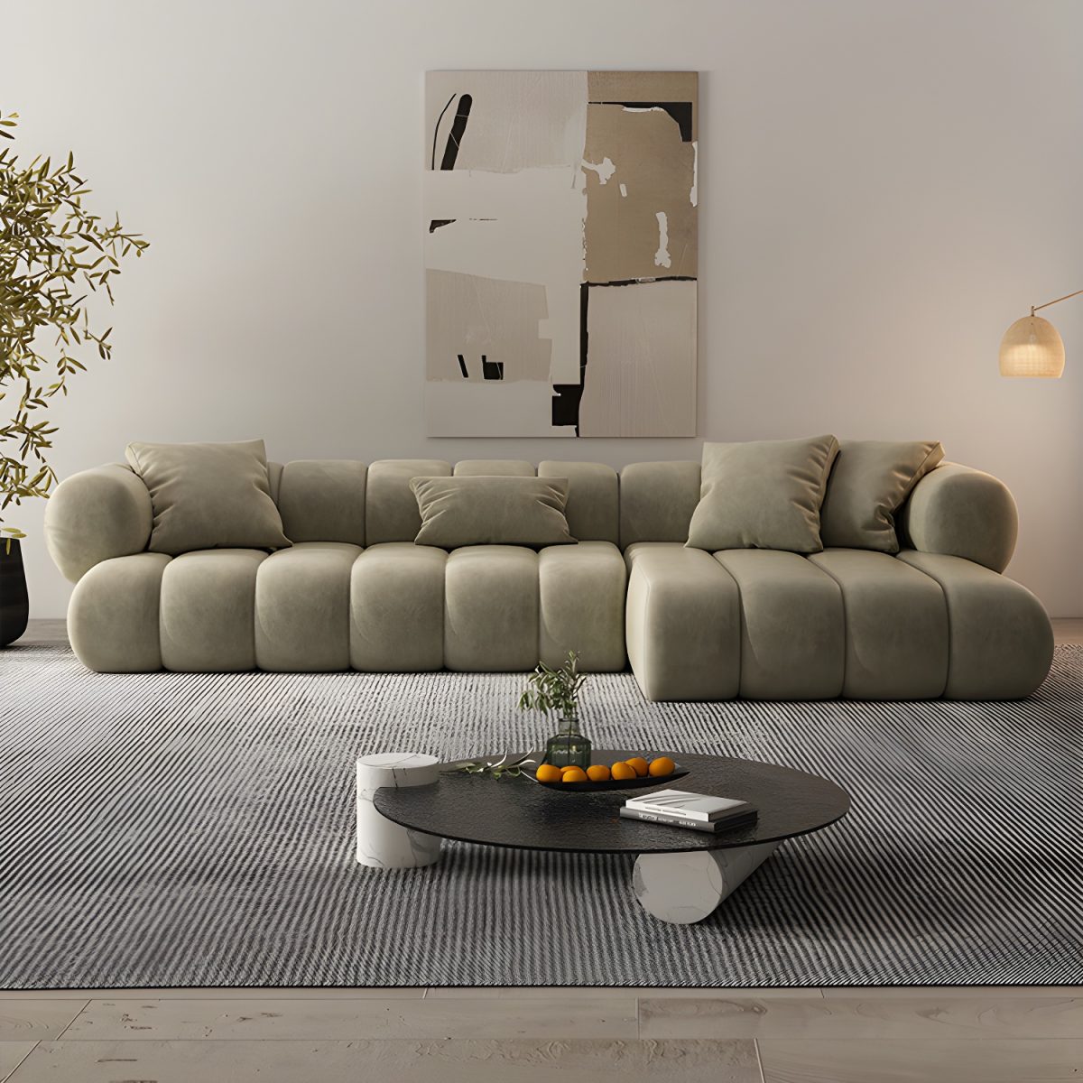 - سهولة التنسيق: بفضل ألوانها الهادئة وتصميمها الانسيابي، يمكنك تنسيقها بسهولة مع مختلف أنواع السجاد، الطاولات، والخداديات الملونة.